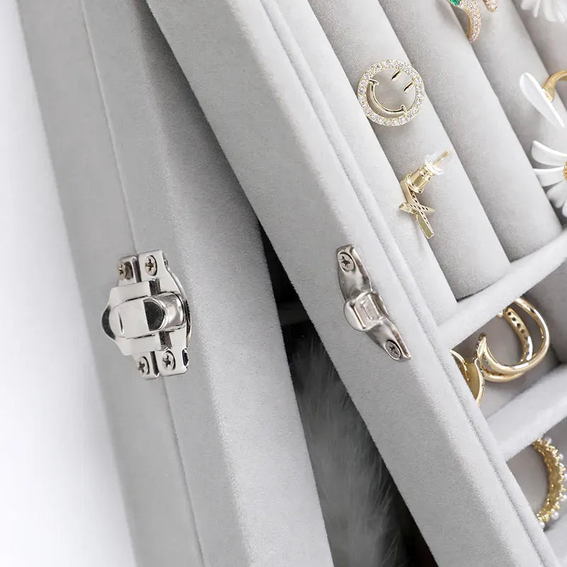 Velvet Carrying Case with Glass Cover Jewelry Ring Display Box Tray Holder Storage Box Organizer Earrings Bracelet Showcase